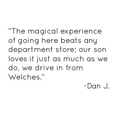 We carry carefully selected toys, books, games, plush, and more. We can help you find the perfect gift for any age!